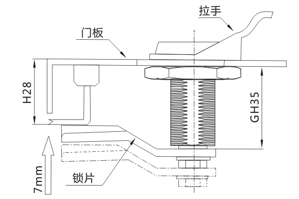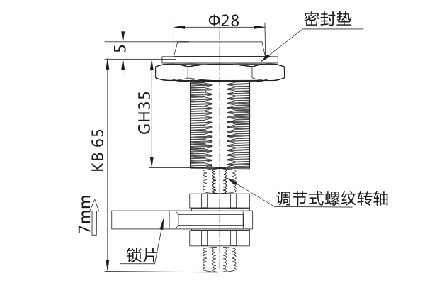 材料: 锌合金锁壳和锁芯,碳钢钢栓和螺母。