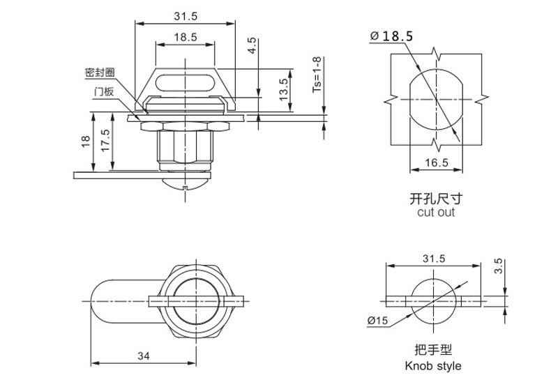 旋转90°开启或锁