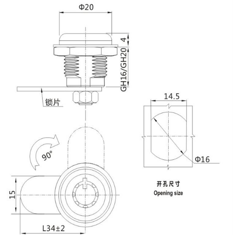 材料:锌合金锁壳和锁芯,碳钢钢栓和螺母