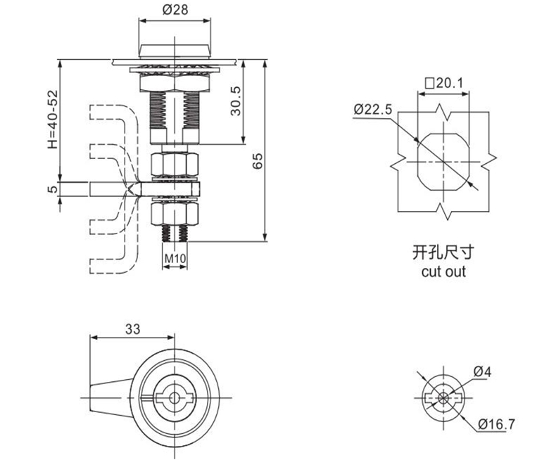 材料:锌合金锁壳和锁芯,碳钢钢栓和螺母