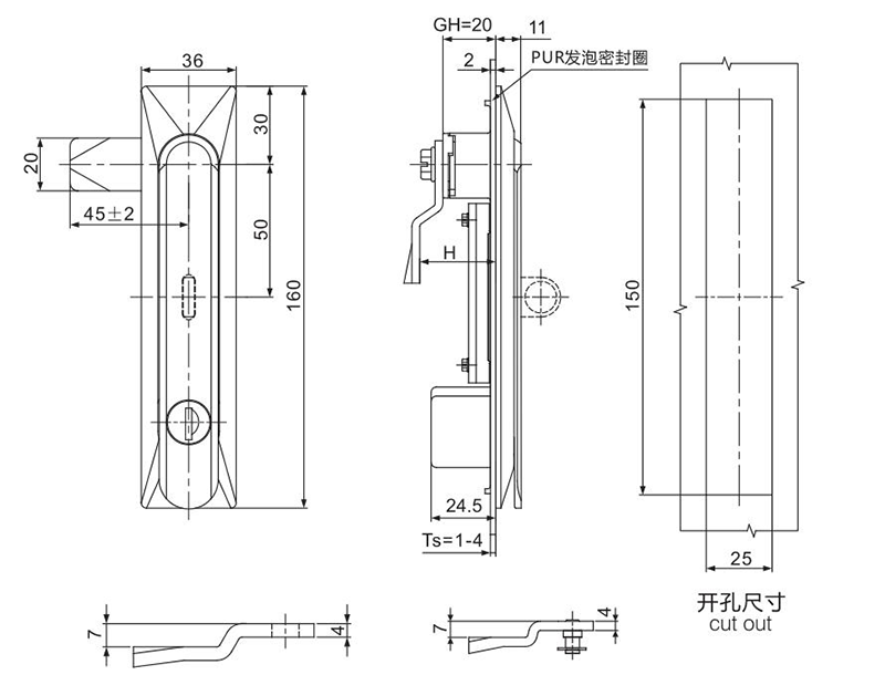 锌合金锁壳,锁芯和手柄 螺母和碳钢钢栓,带挂扣 |