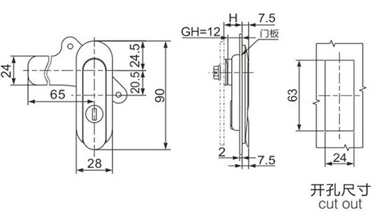 结构说明:旋转90°开启或锁闭