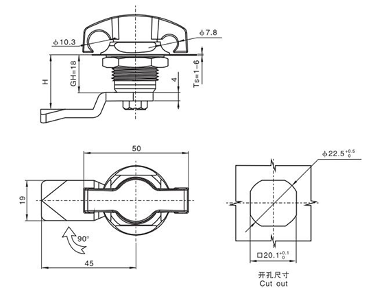 结构说明:旋转90°开启或锁闭