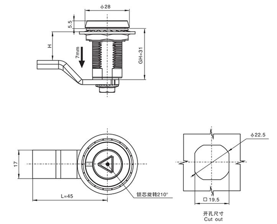 结构说明:旋转90°开启或锁闭